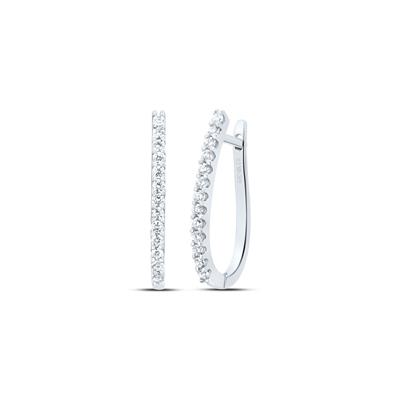 • 10K White Gold Round Diamond Oblong Hoop Earrings 0.25 Cttw