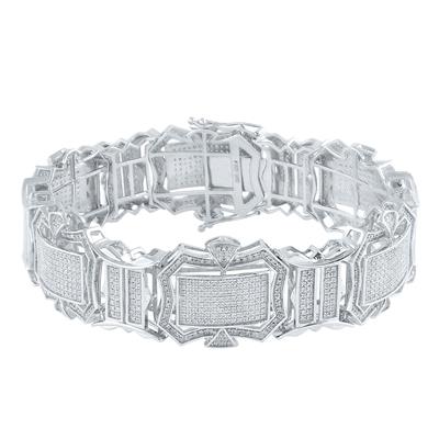Sterling Silver Round Diamond Rectangle Link Bracelet 3- 0.20 Cttw