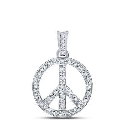 10K White Gold Round Diamond Peace Sign Circle Pendant 0.25 Cttw