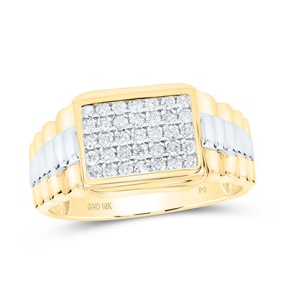 10K Yellow Gold Round Diamond Rectangle Cluster Ribbed Two-Tone Ring 0.50 Cttw