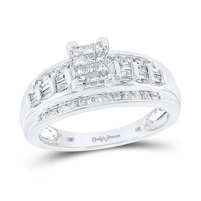 10K White Gold Princess Diamond Cluster Bridal Engagement Ring 0.50 Cttw
