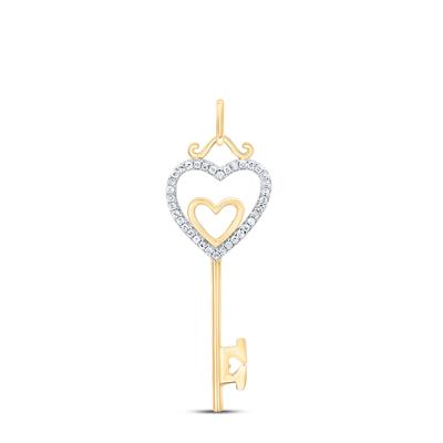 10K Yellow Gold Round Diamond Heart Key Pendant 0.10 Cttw