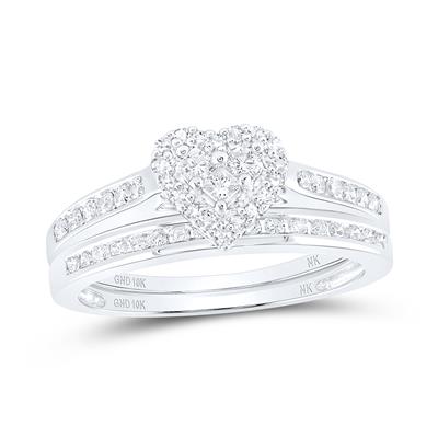 10K White Gold Diamond Heart Bridal Wedding Ring Set 0.50 Cttw
