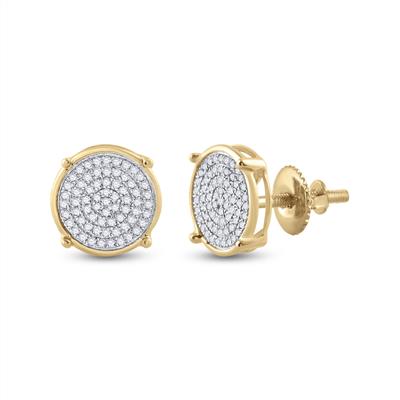 • 10K Yellow Gold Round Diamond Circle Disk Cluster Earrings 0.25 Cttw