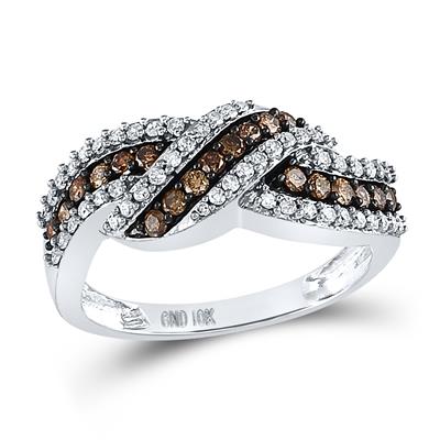 10K White Gold Round Brown Diamond Crossover Band Ring 0.75 Cttw
