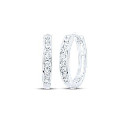 • 10K White Gold Round Diamond Hoop Earrings 0.25 Cttw