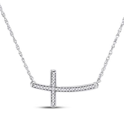 10K White Gold Round Diamond Horizontal Cross Pendant Necklace 0.10 Cttw